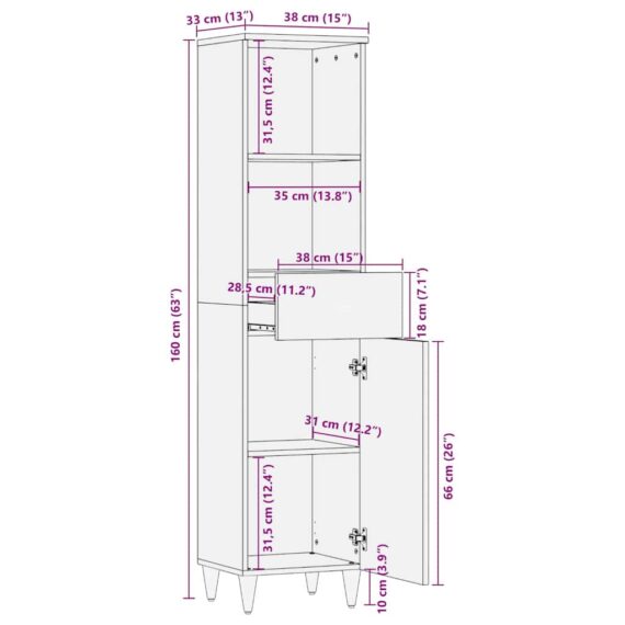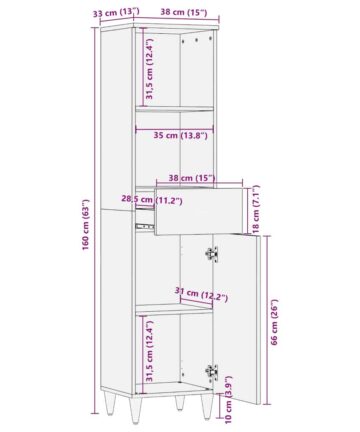 - Gesamtabmessungen: 38 x 33 x 160 cm (L x B x H)