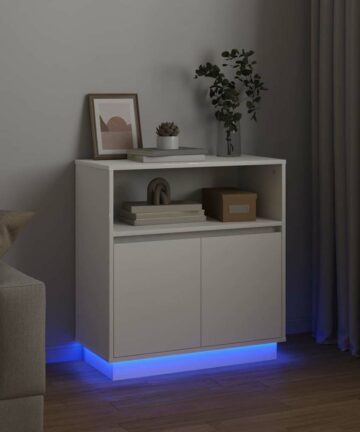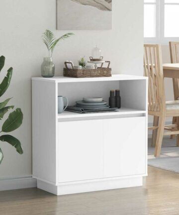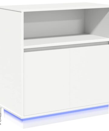 Dieses Sideboard kombiniert modernes Design mit praktischen Funktionen und passt perfekt in die heutigen Wohnräume. Es sieht elegant aus und ist gut gebaut, sodass es jeden Raum aufpeppen kann, während es viel Stauraum bietet. Entworfen für alle, die Wert auf Stil legen, bringt die schlanke Form und das Licht einen charmanten Touch in dein Zuhause. Materialien: Hergestellt aus hochwertigem Holzwerkstoff, ist dieses Sideboard robust und langlebig. Die glänzende Oberfläche ist nicht nur schick, sondern auch leicht zu reinigen. Perfekt für alle, die nach stabilen Möbelstücken suchen, die über die Zeit gut aussehen. Enthaltene Komponenten: Es hat Fächer, Schubladen und Regale, die dir viele Optionen für Stauraum bieten. Die eingebauten LED-Lampen setzen deine Artikel in Szene und sorgen für Gemütlichkeit. Merkmale / Funktion / Design: Mit einem tollen modernen Design ist dieses Sideboard eine super Ergänzung für jede Inneneinrichtung. Die Türen verstecken deine Sachen und sorgen für einen sauberen Look, und es gibt Platz für alles, von Essgeschirr bis zu Wohnzimmer-Krimskrams. Empfohlene Anwendungen: Ideal für Ess- oder Wohnzimmer, passt dieses Sideboard zu verschiedenen Stilen und kann vielseitig genutzt werden – ob als Buffet bei Partys oder als Ausstellungsstück. Sein flexibles Design macht es perfekt für jeden Raum. Pflege & Wartung: Halte dein Sideboard frisch, indem du es mit einem feuchten Tuch abwischst und starke Chemikalien vermeidest. Beim Zusammenbauen mit zwei Leuten und etwas Werkzeug schaffst du es stabil und langlebig zu halten.