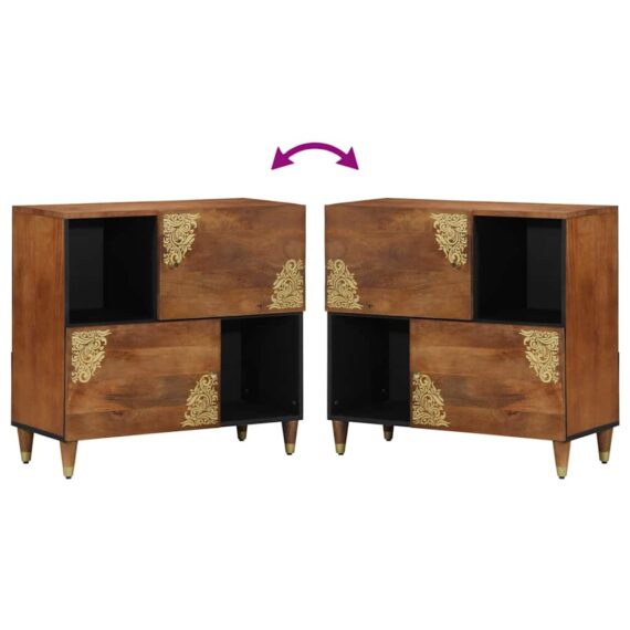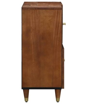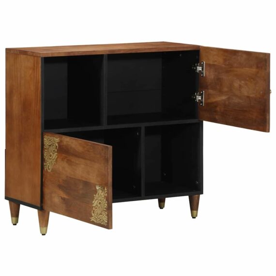 Dieses schicke Sideboard kombiniert modernen Charme mit praktischen Stauraummöglichkeiten. Perfekt für dein Wohnzimmer oder Esszimmer. Es hat klare Linien und ein zeitgemäßes Design, das zu fast jedem Style passt und jede Menge Platz für deine Sachen bietet. Mit viel Liebe zum Detail gefertigt, wird es sowohl dir beim Organisieren helfen als auch deinem Raum einen Style-Boost geben. Top-Qualität: Dieses Sideboard ist aus massivem Mangoholz gebaut und hat eine strukturierte Oberfläche, die sowohl Charme als auch Haltbarkeit vereint. Die natürliche Holzmaserung bringt etwas Natur ins Zuhause und schafft eine warme Atmosphäre. Viel Platz: Die clever gestalteten Regale und Türen sorgen dafür, dass du all deine wichtigen Dinge ordentlich verstauen kannst. Egal ob Geschirr oder Brettspiele – hier findet alles seinen Platz. Modernes Design: Die schlanke rechteckige Form passt großartig zu modernen Wohnungen. Klare Linien und eine glatte Oberfläche sorgen für schlichte Eleganz und fügen sich harmonisch in deinen Raum ein. Perfekte Größe: Mit 80 cm × 33,5 cm × 75 cm ist es ideal für verschiedene Räume. Ob Wohnzimmer oder Essbereich, es bringt Stil und bleibt dabei unauffällig. Einfache Pflege: Es ist super einfach, es in Top-Zustand zu halten. Einfach mit einem feuchten Tuch abwischen, und es sieht immer frisch aus. Diese Prüfung sorgt dafür, dass es lange hält und immer gut aussieht.