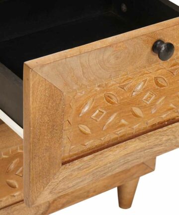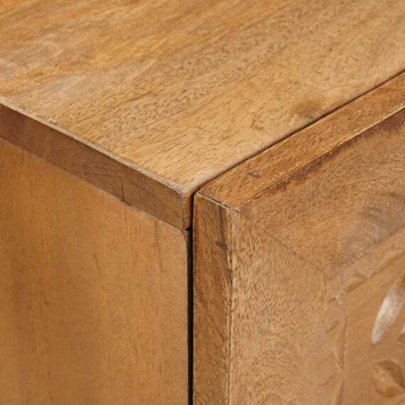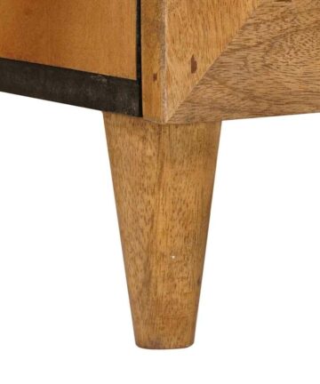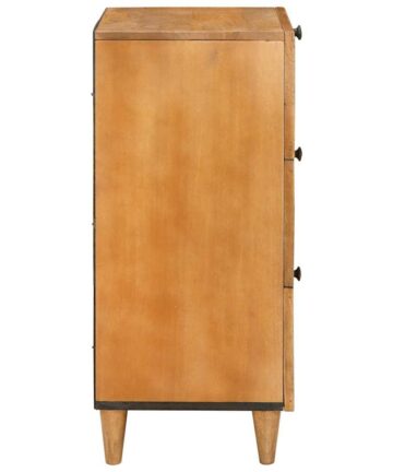 Schau dir dieses Holzsideboard an. Mit seinem schlanken rechteckigen Design verwandelt es jeden Wohnraum in einen stylischen Ort, der Funktionalität und Eleganz verbindet. Die Kombination aus massivem Mangoholz und engineered wood sorgt für einen modernen, minimalistischen Look mit Charme. Egal, ob du es zur Präsentation von Gegenständen im Wohnzimmer nutzt oder als praktischen Organizer an die Wand stellst, dieses Sideboard passt perfekt in jeden Raum. Materialqualität Das Sideboard ist aus robustem, massivem Mangoholz und engineered wood gemacht. Diese Mischung macht es langlebig und stylish, sodass es auch über die Jahre gut aussieht. Jedes Stück hat eine einzigartige Maserung und Textur, die dem Möbelstück Charme verleiht und gleichzeitig robust bleibt, was es zum Blickfang in jedem Raum macht. Viel Stauraum Mit mehreren Schubladen und Fächern bietet dir unser Sideboard richtig viel Platz zum Aufteilen und Verstauen. Es ist ideal, um Besteck, Tischdecken oder Deko-Objekte ordentlich zu halten, und verbindet praktischen Nutzen mit ansprechendem Design. Chic Design Die Pfostenbeine geben dem Sideboard einen modernen Look und sorgen gleichzeitig für Stabilität. Die klaren Linien und das schlichte Design machen es flexibel genug, um zu verschiedenen Dekorationsstilen zu passen, vom rustikalen Rückzugsort bis zur modernen Stadtwohnung, und sich nahtlos in deine anderen Möbel einzufügen. Einfache Montage Du brauchst zwei Personen und einen Schraubendreher, um es zusammenzubauen. Die leicht verständliche Montage hilft dir, Zeit zu sparen, wenn du eine schnelle und einfache Installation möchtest, sodass dein Sideboard bald einsatzbereit ist. Nur für drinnen Dieses Sideboard ist speziell für drinnen konzipiert und deckt all deine Aufbewahrungs- und Präsentationsbedürfnisse ab. Die kompakte Größe macht es möglich, auch in größeren Wohnzimmern oder kleineren Ecken perfekt zu passen, ohne dass du auf Benutzerfreundlichkeit und Stil verzichten musst.