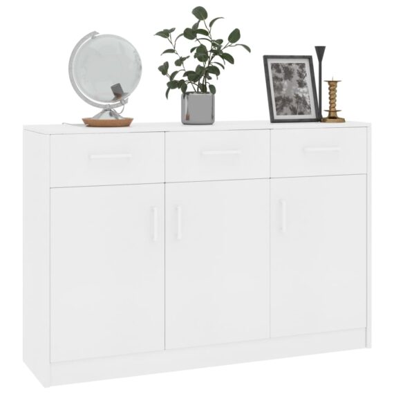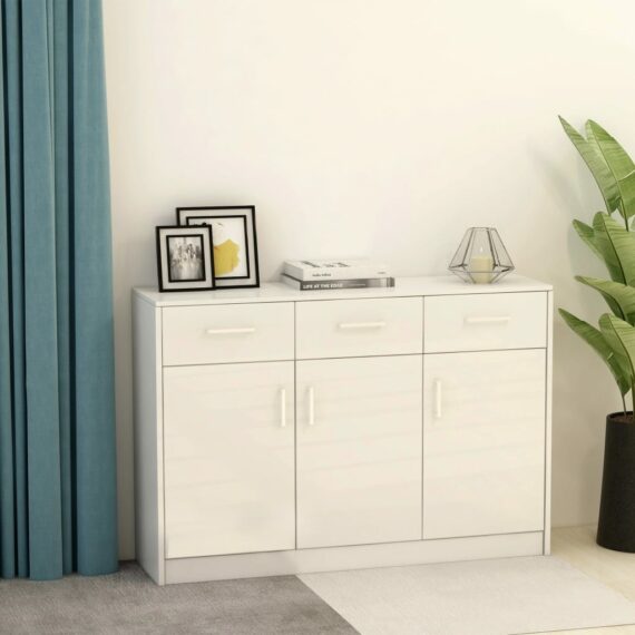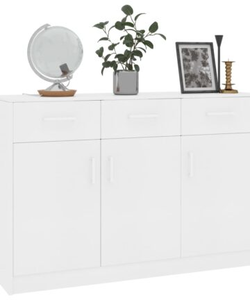 Dieses Sideboard im minimalistischen Design wird eine praktische und zugleich dekorative Ergänzung zu Ihrem Zuhause sein. Mit 3 Schubladen und 3 Türen bietet das Sideboard ausreichend Stauraum für Bücher, Multimedia-Geräte und andere Gegenstände. Die starke Tischplatte bietet den idealen Platz zum Aufstellen von Dekorationsartikeln, Fotorahmen oder Topfpflanzen. Es kann auch als Lowboard, Beistellschrank usw. verwendet werden. Dank des hochwertigen Holzwerkstoffs ist dieses Sideboard auf eine lange Lebensdauer ausgelegt. Der Schubladenschrank ist leicht mit einem feuchten Tuch zu reinigen.