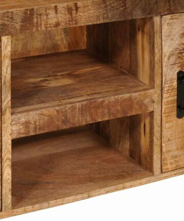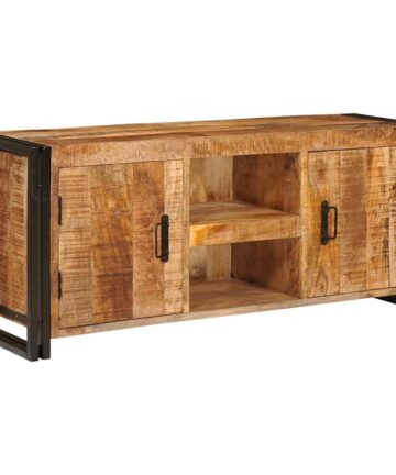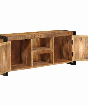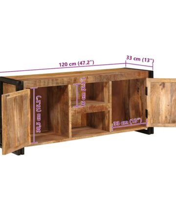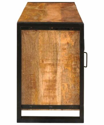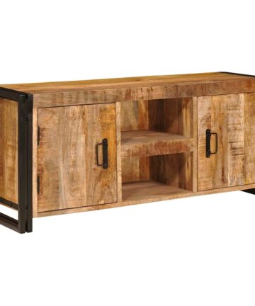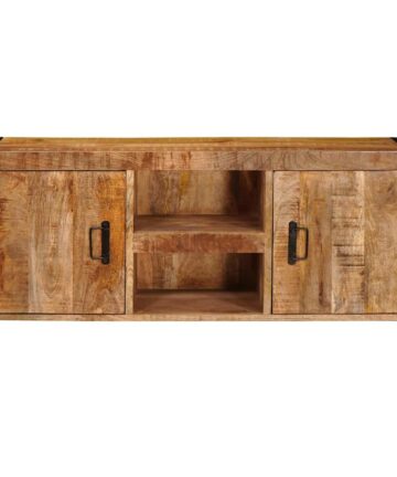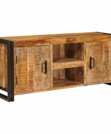 Dieses TV-Schrankset mit Stauraum bringt rustikalen Charme in dein Wohnzimmer, mit seiner erdigen braunen Oberfläche und eleganten schwarzen Eisenakzenten. Sein rechteckiges Design und seine raue Textur machen es zu einer vielseitigen Ergänzung, die nahtlos in traditionelle und minimalistische Interieurs passt. Entworfen, um verschiedene Stauraumbedürfnisse zu erfüllen, ist es die ideale Wahl zur Organisation von Mediengeräten, Dekorationen oder wertvollen Souvenirs, die sowohl Funktionalität als auch Ästhetik für Haushalte bieten, die praktische Lösungen mit dekorativem Flair suchen. Viel Stauraum Diese Einheit bietet großzügigen Stauraum und sorgt dafür, dass du genügend Platz für deine elektronischen Mediengeräte, dekorativen Gegenstände oder andere Haushaltsartikel hast. Ihr Design integriert mehrere eingebaute Regale und ein Türsystem mit Scharnieren, was die Organisation und den Zugriff auf deine Besitztümer erleichtert. Robuste Eisenkonstruktion Mit Stabilität und Langlebigkeit wird die Eisenstruktur durch ein pulverbeschichtetes Finish ergänzt. Das macht es nicht nur zu einem stabilen Möbelstück, sondern auch farbbeständig, pflegeleicht und sorgt für eine lange Lebensdauer auch bei täglichem Gebrauch. Rustikaler Stil Das Design des Schranks betont einen natürlichen Charme, der durch seine raue Textur und die matte Braun- und Schwarzfarbkombination geprägt ist. Das macht es zu einem zentralen Element, das eine warme, heimelige Atmosphäre ausstrahlt und das Gesamtambiente deines Wohnraums verbessert. Pulverbeschichtete schwarze Griffe Der Schrank ist mit Eisengriffen ausgestattet, die pulverbeschichtet sind, um zusätzlichen Widerstand und ein elegantes Finish zu bieten. Diese Griffe sorgen für ein sanftes Öffnen und Schließen, was die Funktionalität und Bequemlichkeit des Schranks erhöht. Einfach zu pflegen Der Schrank erfordert wenig Pflege, da seine Oberfläche einfach mit einem trockenen Tuch abgewischt werden kann. Um sein frisches Aussehen zu erhalten, solltest du den Kontakt mit scharfen Chemikalien vermeiden, damit er viele Jahre lang ein geschätzter Teil deines Zuhauses bleibt.