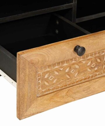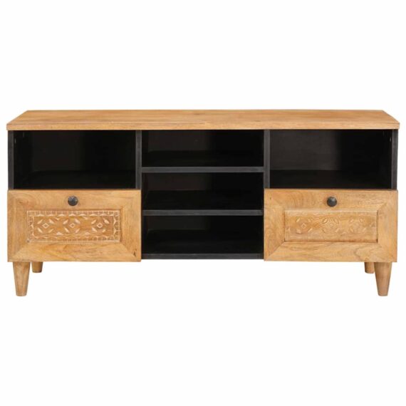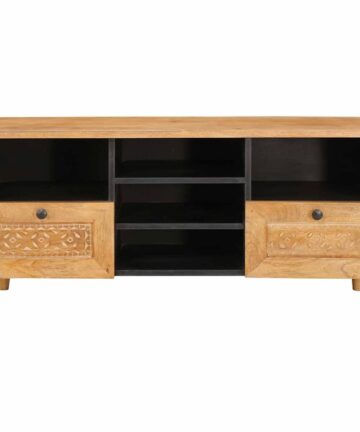 Dieser TV-Schrank kombiniert modernes Flair mit praktischen Funktionen und ist ein Muss für dein Wohnzimmer. Mit seinen sanften Linien und dem minimalistischen Look bringt er eine elegante Note in dein Zuhause und passt super zu verschiedenen Stilen. Hergestellt aus massivem Mango-Holz, ist er warm, langlebig und ein toller Begleiter für deine Medientechnologie oder Deko. Egal, ob du ihn an eine Wand stellst oder in die Mitte des Raumes, dieser TV-Schrank wertet deinen Raum in Eleganz und Gebrauchstauglichkeit auf. Massivholz Mango: Dieser TV-Schrank besteht aus starkem Mango-Holz, das ihm eine robuste Struktur verleiht, die dem täglichen Verschleiß standhält und dabei gut aussieht. Die schöne Maserung sorgt für ein natürliches Gefühl und zeigt erstklassige Handwerkskunst. Es ist eine smarte Wahl für Langlebigkeit und sorgt dafür, dass du sowohl Stil als auch Zuverlässigkeit bekommst. Elegantes modernes Design: Mit klaren Linien und minimalem Schnickschnack fängt dieser TV-Schrank modernes Design perfekt ein. Seine rechteckige Form und die glatte Oberfläche schaffen einen eleganten Look, der in viele Wohnzimmer-Ambiancen passt. Das schlichte Design sieht nicht nur gut aus, sondern funktioniert auch gut und bietet eine flexible Speicherlösung für moderne Haushalte. Funktionale Stauraum-Features: Der Schrank bietet reichlich Platz für alles, von Elektronik bis Deko. Die Regale passen sich an verschiedene Gegenstände an, während die klassischen Schubläden es einfach machen, Fernbedienungen und Zeitschriften zu organisieren. Dieses clevere Stauraumsystem hält deinen Wohnbereich ordentlich und passt gut zur schnellen Lebensweise heute. Keine Montageprobleme: Er kommt als ganzes Stück, also ist das Aufstellen super einfach. Stell ihn einfach dahin, wo du ihn im Wohnzimmer möchtest, und genieße den Komfort und Stil. Es geht darum, unkompliziert zu leben. Pflegeleichte Wartung: Die Pflege ist ein Kinderspiel; wische ihn einfach mit einem trockenen Tuch ab, um ihn frisch aussehen zu lassen. Vermeide aggressive Chemikalien und Scheuermittel, die das Finish beschädigen könnten. Mit dieser einfachen Pflege behält er über Jahre seine frische Optik!