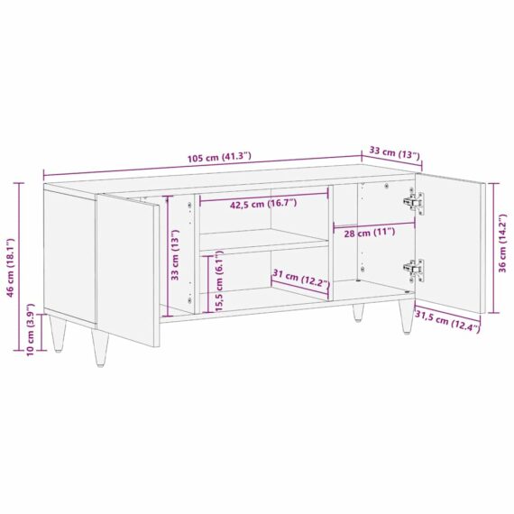 Be the first to review “TV-Schränk Hellbraun 105 x 33 x 46 cm massives Mangoholz”