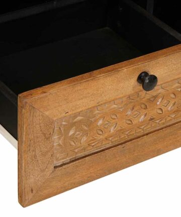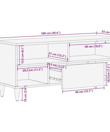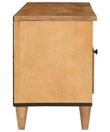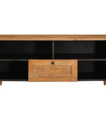 Dieser moderne TV-Schrank bringt mit seinem cleveren Design und dem stabilen Mango-Holz einen Hauch von Eleganz in dein Wohnzimmer, während er gleichzeitig eine starke und stylishe Aufbewahrungslösung bietet. Seine rechteckige Form hat richtig schöne, glatte Linien, die perfekt für moderne Räume sind. Er ist sowohl Medienzentrum als auch Aufbewahrungseinheit und erfüllt verschiedene Lebensbedürfnisse – von Technikgeräten verstauen bis Deko zeigen. Massivholz Mango: Dieser TV-Schrank hebt sich wirklich ab, dank seines hochwertigen massiven Mango-Holzes. Er ist robust und hält einiges aus. Die natürliche Textur passt super zu modernen Interieurs und bringt Wärme und Eleganz in jeden Raum. Mit diesem Material bist du auf der sicheren Seite, weil er für die Ewigkeit gebaut ist. Funktionale Regale: Mit praktischen Regalen bietet dieser Schrank einfache Lösungen zur Aufbewahrung. Die flexiblen Regale kannst du ganz nach Belieben anordnen, ideal für Technikgeräte und zum Ausstellen von Deko. Und die glatte Oberfläche sorgt dafür, dass alles griffbereit bleibt. Moderner Stil: Mit seinem minimalistischen Design passt dieser TV-Schrank perfekt in zeitgenössische Räume. Die eleganten Linien und die strukturierte Oberfläche heben die Eleganz deines Wohnbereichs. Die matte Knopf-Oberfläche sorgt für einen Touch Klasse und lässt jedes Detail ins Auge fallen. Vielseitige Nutzung: Dieses Stück ist für verschiedene Räume gemacht und ideal für Wohnzimmer oder Medienbereiche. Wenn du stylishe und funktionale Möbel suchst, bietet er dir viel Stauraum und fügt sich perfekt in deine gesamte Dekoration ein. Einfache Pflege: Den Schrank in Form zu halten ist easy. Wisch einfach mit einem trockenen Tuch drüber, um Staub zu entfernen, und vermeide scharfe Chemikalien, um ihn frisch und sauber zu halten. Mit diesen einfachen Schritten bleibt er über Jahre hinweg top in Schuss.