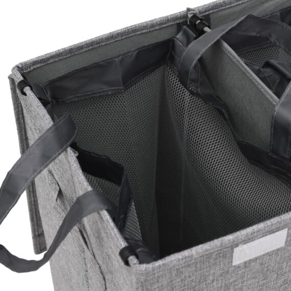 Nimm diesen Wäschekorb mit seitlichen Griffen noch heute als deinen Assistenten ins Haus! Er hält deine schmutzige Wäsche außer Sichtweite und ist außerdem eine dekorative Ergänzung zu deiner Einrichtung。 Langlebiges Material: Leinenimitat ist als ein haltbares und außergewöhnlich robustes Material. Ein weiterer Vorteil ist die gute Drapierbarkeit, da er aus Polyester besteht, einem der haltbarsten und langlebigsten Stoffe!Herausnehmbare Innenbeutel: Die 2 herausnehmbaren Taschen mit je 2 Griffen lassen sich leicht handhaben und in die Waschküche tragen. So musst du nicht den gesamten Wäschekorb transportieren.Praktisches Design: Der Deckel verhindert unangenehme Gerüche und schützt deine Wäsche vor Staub. Die Griffe an beiden Seiten helfen dir, den Wäschekorb leicht in die Waschküche zu tragen. Der Wäschebehälter lässt sich bei Nichtgebrauch platzsparend zusammenklappen.Stauraum mit 2 Fächern: Dieser Wäschekorb verfügt über 2 Fächer, in denen du deine Wäsche einfach nach Farbe und Art sortieren kannst, um am Waschtag Zeit zu sparen. Hinweis:Jedes Produkt wird mit einer Montageanleitung in der Verpackung für eine einfache Montage geliefert.