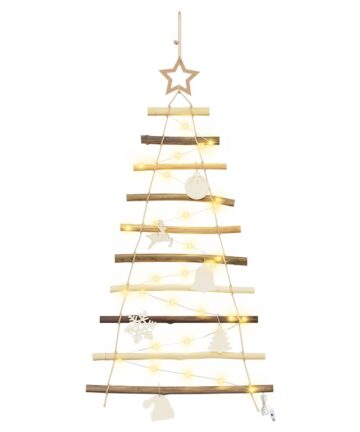 Dieser hängende Weihnachtsbaum strahlt Eleganz aus mit seiner modernen Schlichtheit und seinem Charme. Er ist perfekt dafür gemacht, jeden Innenraum oder geschützten Außenbereich zu verschönern. Diese saisonale Deko ist eine coole und stylische Alternative zu den klassischen Weihnachtsbäumen. Häng ihn ganz unkompliziert an Wände oder Türen, um eine festliche Stimmung zu schaffen, die sowohl die Sinne anspricht als auch praktische Vorteile mit einem Touch von Natur verbindet. Hochwertiges Eschenholz Der hängende Weihnachtsbaum ist aus solidem Eschenholz gefertigt und hat einen natürlichen Braunton, der super zu verschiedenen Stilrichtungen passt. Dieses langlebige Material sorgt dafür, dass der Baum sowohl im Aussehen als auch in der Langlebigkeit überzeugt. Warme LED-Lichter Diese saisonale Deko kommt mit warmweißen LED-Lichtern, die schön im Design integriert sind und überall eine einladende Atmosphäre schaffen. Der Abstand zwischen den 10 LEDs sorgt für ein harmonisches Lichtmuster, das die Schönheit des Baums noch verstärkt. USB-Stromversorgung Für modernen Komfort ist der Baum mit einer USB-Stromquelle versehen, was das Beleuchten mit verschiedenen Geräten oder Adaptern super einfach macht. Damit kannst du die Deko in jedem Raum anpassen und bringst festliche Stimmung in dein Wohnzimmer oder auf die Terrasse. Modernes Design Dieses Stück hat ein schickes, funktionales Design mit klaren Linien und minimaler Deko. Es ist eine stilvolle Ergänzung für die Weihnachtsdeko und trifft den modernen Geschmack. Vielseitige Platzierung Er ist sowohl für Innen- als auch für geschützte Außenbereiche gedacht, was ihn perfekt für Wohnzimmer, Gärten oder Terrassen macht – damit verleihst du festlichen Zusammenkünften eine elegante Note.