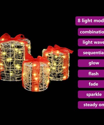 Die Geschenkbox-Dekoration ist ein tolles Teil, das deinem Raum einen modernen Touch und elegante Atmosphäre verpasst. Das glatte Acrylmaterial wirkt hochwertig und passt perfekt für alle, die klare Linien und einen minimalistischen Look mögen. Ideal für Weihnachten, macht ihre kompakte Größe es leicht, sie in Wohnzimmer, Büros oder bei Festen zu integrieren. Die integrierten LED-Streifenlichter sorgen für ein sanftes und schönes Licht, das jeden Raum aufwertet. Diese coole Kombination aus Stil und Zweckmäßigkeit macht sie zu einem liebevollen saisonalen Schmuckstück. Materialien: Hochwertiges Acryl sorgt für eine edle und glatte Oberfläche. Dieses Material wurde wegen seiner Langlebigkeit und dem modernen Look gewählt, der für eine zeitgemäße Atmosphäre sorgt. Es sieht nicht nur gut aus, sondern ist auch robust genug für festliche Innenräume. Enthaltene Komponenten: Im Set sind flexible LED-Streifenlichter enthalten, die eine tolle Beleuchtungsoption bieten und jede Dekoszene aufpeppen. Diese LEDs sind in das Design integriert und sorgen für gleichmäßiges, sanftes Licht in der Geschenkbox, während sie energieeffizient arbeiten und optisch ansprechend sind. Merkmale / Funktion / Design: Dieses Stück ist mit dem Fokus auf Einfachheit entworfen und fängt das moderne ästhetische Gefühl mit minimalen Verzierungen ein. Klare Linien machen es vielseitig und anpassbar für verschiedene Stilrichtungen, besonders zur festlichen Saison, und ermöglichen kreative Anpassungen. Empfohlene Anwendungen: Die Geschenkboxen eignen sich hervorragend für Weihnachten und sind hübsche Deko-Elemente unter dem Weihnachtsbaum, auf dem Kaminsims oder als Teil eines festlichen Mittelpunkts. Sie bringen auch in das Büro den festlichen Geist. Pflege & Wartung: Um das strahlende Aussehen zu bewahren, einfach die Acryloberflächen mit einem trockenen, weichen Tuch abwischen. Die LED-Komponenten sollten vorsichtig behandelt werden, um Beschädigungen zu vermeiden. Dank der praktischen USB-Stromversorgung ist der Aufbau kinderleicht und braucht keine komplizierte Wartung. So bleibt dir die Funktionalität und der ästhetische Charme erhalten.