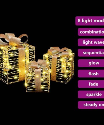Geschenkbox mit 60 LEDs 3 pcs Warmweiß 20 x 20 x 20 cm PET