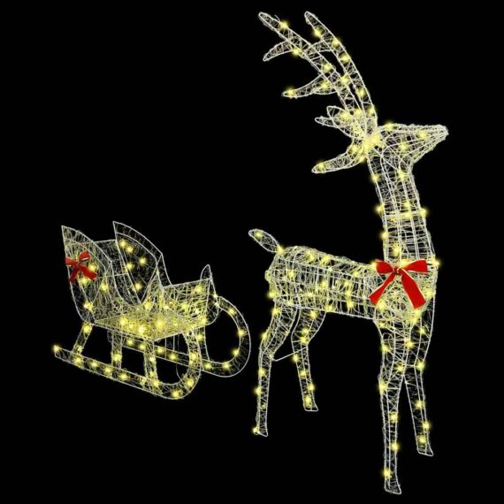 Dieser coole Schlitten mit Rentier ist das perfekte Highlight für deine Weihnachtsdeko. Er bietet eine tolle Mischung aus modernem Design und traditionellem Charme. Mit einer Höhe von 120 cm fängt diese Deko das magische Flair der Feiertage ein und passt super sowohl für Innenräume als auch für Außenbereiche. Die schlanken, minimalistischen Linien und das elegante Design bringen frischen Wind in deine Deko und behalten gleichzeitig einen Hauch festlicher Nostalgie. Ideal für alle, die modernes Flair mit einem klassischen Twist lieben, strahlt dieses Stück eine warme, festliche Atmosphäre aus, die zu verschiedenen Wohnstilen passt. Robuste Acryl-Konstruktion Hergestellt aus hochwertigem Acryl, bietet der Schlitten mit Rentier Stabilität und Langlebigkeit. Das Material hat ein schlankes und elegantes Erscheinungsbild und hält dem Wetter stand. Es hat einen schönen durchscheinenden Glanz, der an frostige Wintermorgen erinnert und ist leicht zu reinigen. LED-Streifenlichter Mit integrierten LED-Streifenlichtern sorgt diese Deko für eine lebendige Beleuchtung. Die LEDs umhüllen die Figur und erzeugen ein sanftes Licht, das an funkelnde Weihnachtssterne erinnert. Die USB-Stromversorgung sorgt für Komfort und Flexibilität, sodass du sie überall aufstellen kannst. Einfacher Zusammenbau lässt sich einfach zusammensetzen, um die Benutzung zu erleichtern. Mit den klaren Anleitungen ist der Aufbau schnell erledigt, was das Stück für alle Dekorationsenthusiasten zugänglich macht. Vielseitigkeit & Ästhetik Dieser Schlitten mit Rentier passt perfekt zu verschiedenen Deko-Stilen. Egal, ob im Vorgarten oder im Wohnzimmer, seine Vielseitigkeit deckt viele festliche Bedürfnisse ab und bringt gleichzeitig Raffinesse mit. Pflege & Wartung Um lange Freude daran zu haben, wisch die Acryloberfläche regelmäßig mit einem trockenen Tuch ab. Die LED-Lichter sind energieeffizient, was die Wartung gering hält und die Lebensdauer des Produkts verlängert, sodass es viele festliche Saisons glänzen kann.