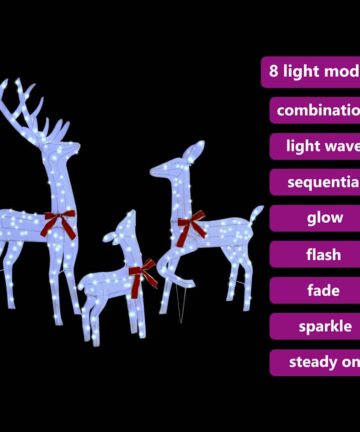 Die Morden Rentierfamilie ist ein beeindruckender Weihnachtsschmuck, der die festliche Freude und moderne Eleganz perfekt einfängt. Mit klaren Linien und minimalen Verzierungen passt sie super in Wohnzimmer oder überdachte Außenbereiche. Stell dir vor, wie diese charmanten Rentiere in deinem Garten stehen oder dein Wohnzimmer erhellen, während ihr sanftes LED-Licht jeden Besucher verzaubert. Die roten Schleifen sorgen für einen schicken festlichen Look und machen die Figuren zu einem Highlight deiner weihnachtlichen Dekoration. Hochwertiger Stoff Die Rentiere sind aus robusten Materialien gemacht, die sie langlebig für den saisonalen Gebrauch machen. Der Stoff fühlt sich weich und angenehm an, bleibt aber gleichzeitig stark. Ideal für eine gemütliche Atmosphäre sorgt diese Materialwahl dafür, dass sie auch nach mehreren Feiertagen noch gut aussehen. Detailierte LED-Lichter Mit den energieeffizienten LED-Lichtern bringen diese Figuren ein tolles Licht ins Spiel. Mit acht verschiedenen Blitzmodi kannst du sie je nach Stimmung anpassen – von lebhaft und aufregend bis hin zu sanft und winterlich. Diese LEDs erzeugen einen faszinierenden visuellen Effekt, der alle beeindruckt und deine festliche Deko aufwertet. Benutzerfreundliche USB-Verbindung Dank einem USB-Netzteil ist die Einrichtung super einfach, du kannst sie überall aufstellen, ohne dass du eine Steckdose brauchst. Diese praktische Energiequelle passt perfekt in moderne Umgebungen, wo Einfachheit und Flexibilität gefragt sind, und sorgt für eine stressfreie Präsentation jede Saison. Stylisches modernes Design Diese Rentierfamilie hat ein modernes und schlichtes Design, das sich durch klare Linien und wenig Verzierungen auszeichnet. Sie passen perfekt in jeden Deko-Stil und bringen gleichzeitig Charme und Raffinesse. Ihr Design macht sie ideal, um viele verschiedene festliche Arrangements elegant zu ergänzen. Saisonale Vielseitigkeit Die wetterbeständigen Eigenschaften machen diese Figuren für drinnen und geschützte Außenbereiche geeignet, also perfekt für jede Umgebung. Ob am Kamin oder in einer Gartenecke, sie bringen festliche Freude an jeden Ort. Ihre Flexibilität verstärkt die Wirkung deiner Weihnachtsdeko in Häusern und Veranstaltungen.