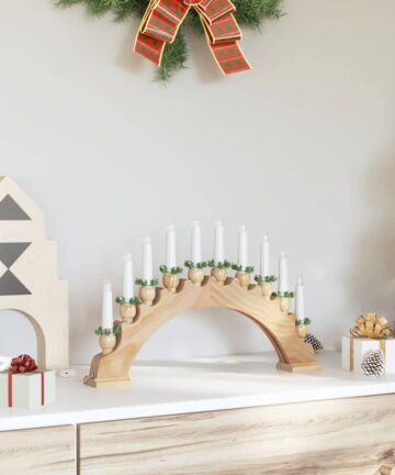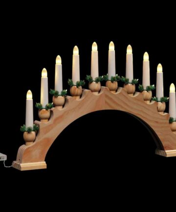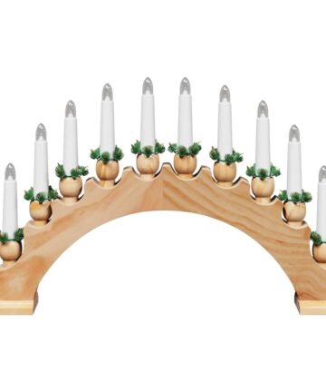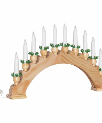 Der Weihnachtskerzenbogen mit 10 LED-Kerzen verbindet Tradition und Moderne für eine bezaubernde Weihnachtsatmosphäre. Hergestellt aus massivem Kiefernholz, fängt dieses Stück den festlichen Geist ein und bringt Wärme in jeden Raum. Er ist perfekt für Kaminsimse und Fensterbänke und taucht deinen Raum in sanftes, warmweißes Licht, das eine gemütliche Umgebung für Familientreffen und Feiertagsfeiern schafft. Dieses hübsche Dekostück verleiht deinem Zuhause nicht nur saisonalen Charme, sondern bringt auch einen Hauch von nostalgischem Flair, der an klassische Weihnachtstraditionen erinnert. Massivholz Kiefer: Der Bogen besteht aus massivem Kiefernholz, das für seine Festigkeit und feinen Maserungen bekannt ist. Diese natürliche Beschaffenheit bietet nicht nur eine schöne Optik, sondern sorgt auch für Langlebigkeit und macht ihn zu einer zeitlosen Ergänzung deiner Weihnachtsdeko. Es verbreitet ein warmes, traditionelles Gefühl und fügt sich perfekt in die festliche Atmosphäre jedes Zuhauses ein. Warmweißes LED-Licht: Mit 10 LED-Kerzen spendet der Bogen ein gemütliches warmweißes Licht – ideal, um eine einladende Atmosphäre zu schaffen. Die LED-Technologie sorgt für sicheres, energieeffizientes Licht, perfekt für den Dauergebrauch während der Feiertage. Genieße das einladende Licht, das deinen Raum in ein festliches Paradies verwandelt. Drahtlose Bedienung: Der Kerzenbogen funktioniert mit AA-Alkalibatterien, so dass du keine störenden Kabel oder Steckdosen brauchst. Diese batteriebetriebene Funktion macht die Platzierung super leicht und flexibel – egal, ob auf dem Kaminsims oder als Tischdeko, dabei behält der Bogen Eleganz und Charme. Saisonale Eleganz: Mit traditionellen Weihnachtsmotiven gestaltet, bringt dieser Bogen die magische Atmosphäre der Feiertage ins Wohnzimmer oder Esszimmer. Sein kunstvolles Design zusammen mit warmem Licht schafft eine einladende Stimmung, perfekt für festliche Zusammenkünfte und unvergessliche Erinnerungen während der Weihnachtszeit. Minimaler Pflegeaufwand: Halte den Kerzenbogen in Top-Zustand mit einfacher Pflege. Nimm die Batterien raus, wenn du ihn nicht nutzt, und wische ihn einfach mit einem trockenen Tuch ab, um eine lange Haltbarkeit zu gewährleisten und sicherzustellen, dass der Bogen jedes Jahr Teil deiner Weihnachtsdeko bleibt.