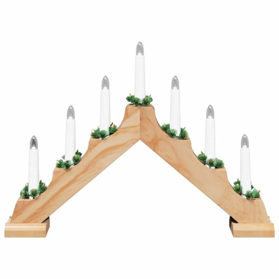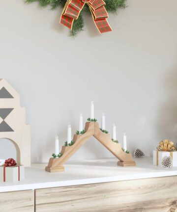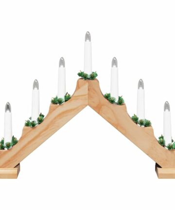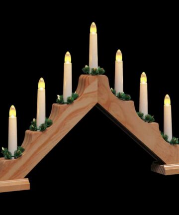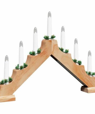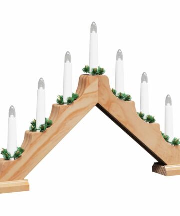 Die Weihnachtskerzenbrücke mit 7 LED-Kerzen ist ein elegantes Teil, das Raffinesse und weihnachtlichen Charme in deine Deko bringt. Perfekt fürs Wohnzimmer oder Esszimmer, strahlen die warmen LED-Lichter eine sanfte, gemütliche Atmosphäre aus und verbreiten den festlichen Geist. Ihr traditionelles Design passt gut zu schicken Möbeln und macht sie zur perfekten Ergänzung für jede Weihnachtsumgebung. Die klassische Kiefernholzkonstruktion und der sanfte Schein machen sie zum idealen Mittelpunkt für Weihnachtsfeiern. Materialien: Diese Weihnachtskerzenbrücke besteht aus massivem Kiefernholz und hat eine schöne, natürliche Oberfläche, die ihren traditionellen Charme unterstreicht. Das Kiefernholz durchzieht das gesamte Stück und sorgt für Stabilität, sodass es in der Weihnachtszeit und darüber hinaus hält. Diese Materialwahl verbindet Langlebigkeit mit einer ansprechenden Optik und macht es zu einem beliebten Weihnachtsstück für dein Wohnzimmer oder Esszimmer. Inklusive Komponenten: Sieben LED-Kerzen, jede in einem schön gestalteten Kiefernholzbogen untergebracht und batteriebetrieben. Die LED-Lichter sind energieeffizient und sorgen für ein warmes, einladendes Licht. Der Kippschalter sorgt für eine einfache Bedienung und macht das Aufstellen und Genießen zum Kinderspiel. Designelemente: Klassische Details spiegeln Weihnachts-Traditionen wider und bieten neben dekorativer Schönheit auch funktionale Beleuchtung. Die Brücke steht stabil auf flachen Oberflächen und fügt sich nahtlos in die Wohn- oder Esszimmerdeko ein. Mit ihrem zeitlosen Look kann dieses Stück während der Feiertagsfeiern als bedeutsamer Mittelpunkt dienen. Empfohlene Anwendungen: Ideal für die weihnachtliche Innendekoration, passt diese Kerzenbrücke perfekt auf Kamine, Tische oder Fensterbänke. Ihr warmes Licht verwandelt jeden Raum in ein festliches Refugium und schafft eine fröhliche, festliche Stimmung für Familientreffen oder ruhige Momente der Besinnung. Pflege & Wartung: Die Pflege der Kerzenbrücke ist einfach – nimm ein trockenes Tuch, um Staub zu entfernen, und die Batterien raus, wenn sie nicht genutzt wird. Diese Pflege sorgt für Langlebigkeit und hält die Deko während jeder Weihnachtszeit frisch und lebendig.