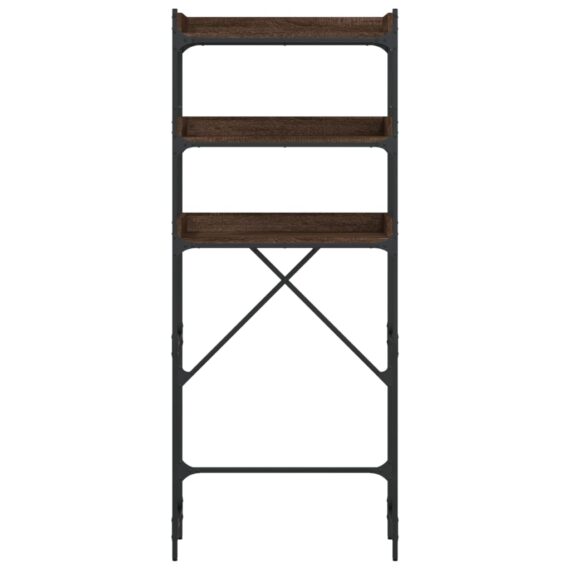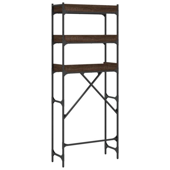 Dieses Waschmaschinenregal mit 3 Böden bietet die perfekte Lösung, um zusätzlichen Stauraum im Bad oder in der Waschküche zu schaffen. Langlebiges Material: Holzwerkstoff ist ein Material von außergewöhnlicher Qualität mit glatter Oberfläche, das sich durch Festigkeit, Stabilität und Feuchtigkeitsbeständigkeit auszeichnet. Aus Holzwerkstoff gefertigt, lässt sich dieses Badregal einfach reinigen.Reichlich Stauraum: Das Badezimmerregal verfügt über 3 Böden und bietet dadurch reichlich Platz für Reinigungsmittel wie Seife, Waschmittel, Weichspüler und vieles mehr.Platzsparend: Das Badregal lässt sich über der Waschmaschine oder der Toilette anbringen. Er passt gut in kleine Räume und eignet sich somit ideal für kleinere Bäder und Waschküchen.Verstellbare Beine: Die verstellbaren Beine mit Kunststoffkappen gewährleisten die Stabilität des Toilettenregals, selbst auf unebenem Untergrund.Metallrahmen: Der Metallrahmen verleiht deiner Einrichtung einen industriellen Stil und sorgt gleichzeitig für Haltbarkeit und Stabilität. Achtung:Um ein Umkippen zu vermeiden, sollte dieses Produkt mit der mitgelieferten Wandhalterung gesichert werden. Gut zu wissen:Schrauben und Dübel für die Innenseite der Wand sind nicht enthalten. Wir empfehlen dir, Schrauben und Dübel zu finden und zu verwenden, die speziell für deine Wände geeignet sind. Wenn du dir nicht sicher bist, kannst du dich an einen Fachmann wenden. Bitte lies und befolge jeden Schritt in der Anleitung.